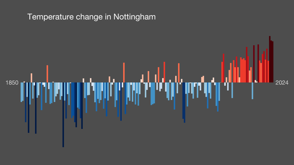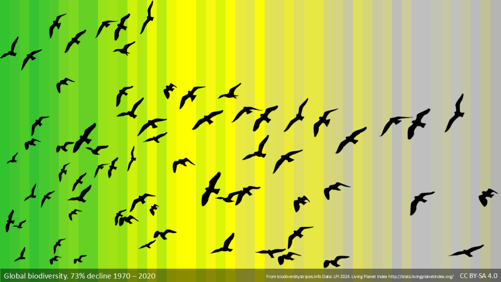 Now we can also see the impact on biodiversity too, using the similar stripes visuals created by Prof. Miles Richardson at University of Derby.